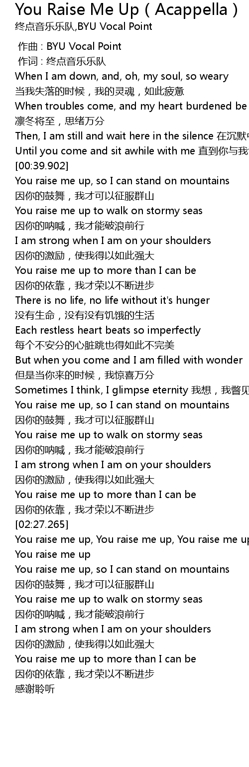 You Raise Me Up Acappella 翻自secret Garden You Raise Me Up Acappella Fan Zi Secret Garden Lyrics Follow Lyrics