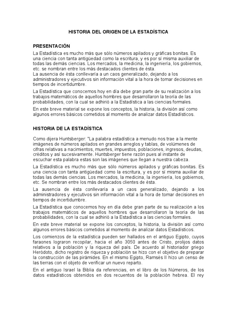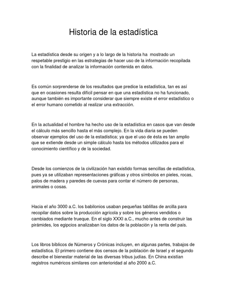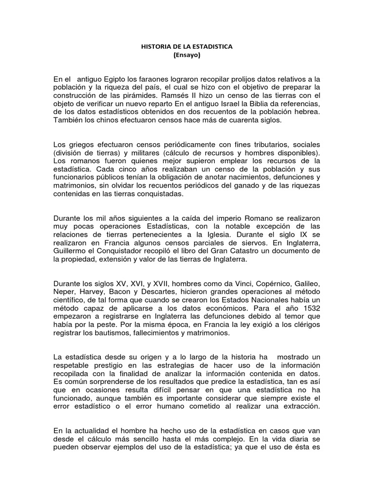 Ensayo Historia De La Estadistica Estadisticas Calculo