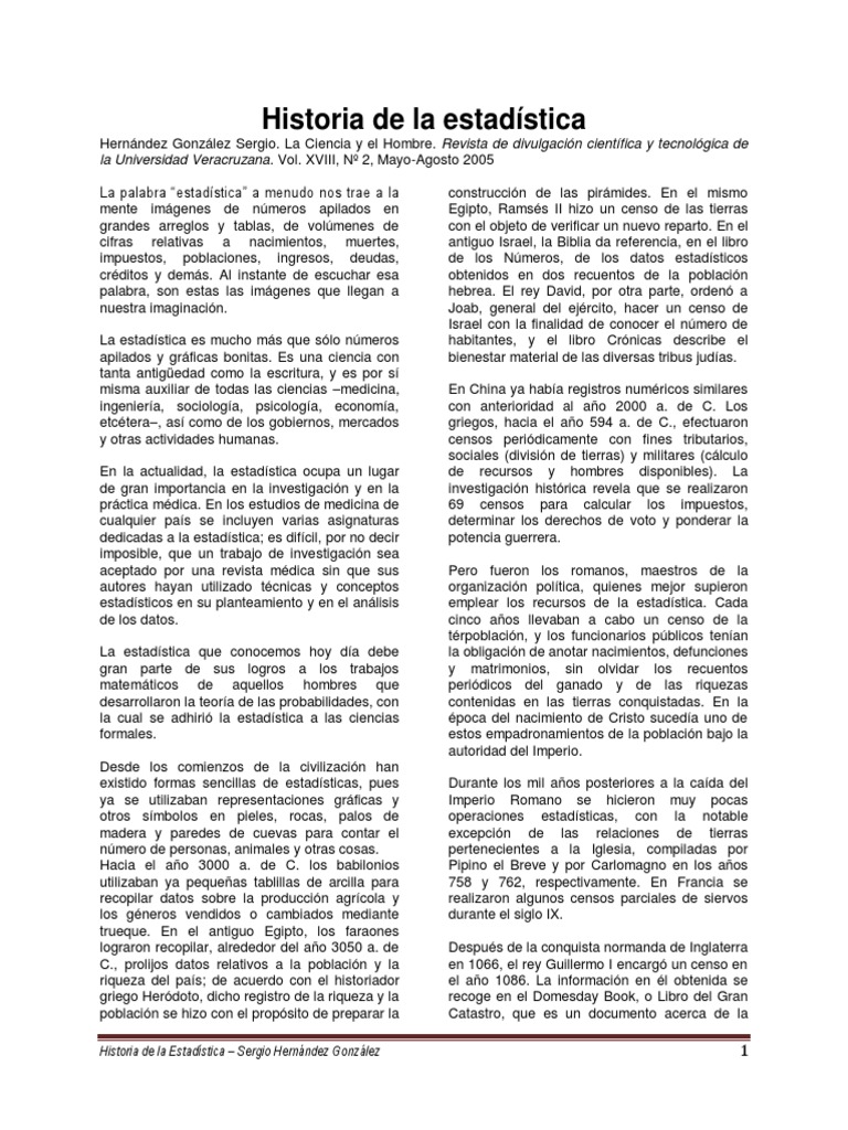 Historia De La Estadistica Hernandez G Sergio Estadisticas Probabilidad