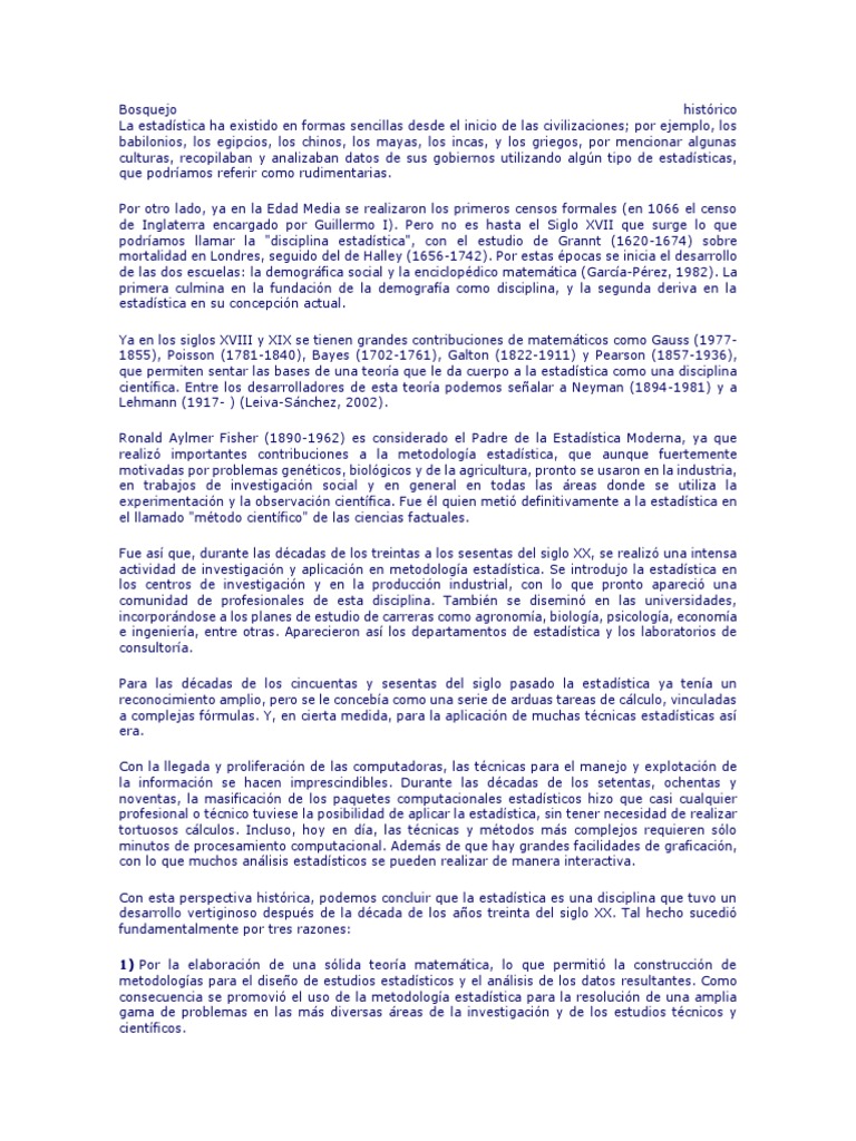 Resumen Parte De La Historia De Estadistica Resumenes De Bioestadistica Docsity
